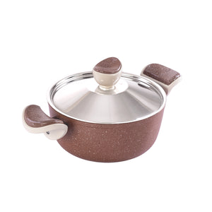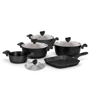 Its body conveys an excellent performance in terms of conducting heat in a fast and well-distributed form; while its extra heat-resistant exterior makes this line compatible with all cooking surfaces. The colors and decoration are stylish, aiming to appeal to millennials and the brave. This Line is perfect for cost-conscious people whom privilege results. Italian 3 layer granite coatingPerfect and healthy cooking-Non-sticking surface, dont use metal utensils-Dishwasher safe-Cooking surface easy to clean-PFOA Free